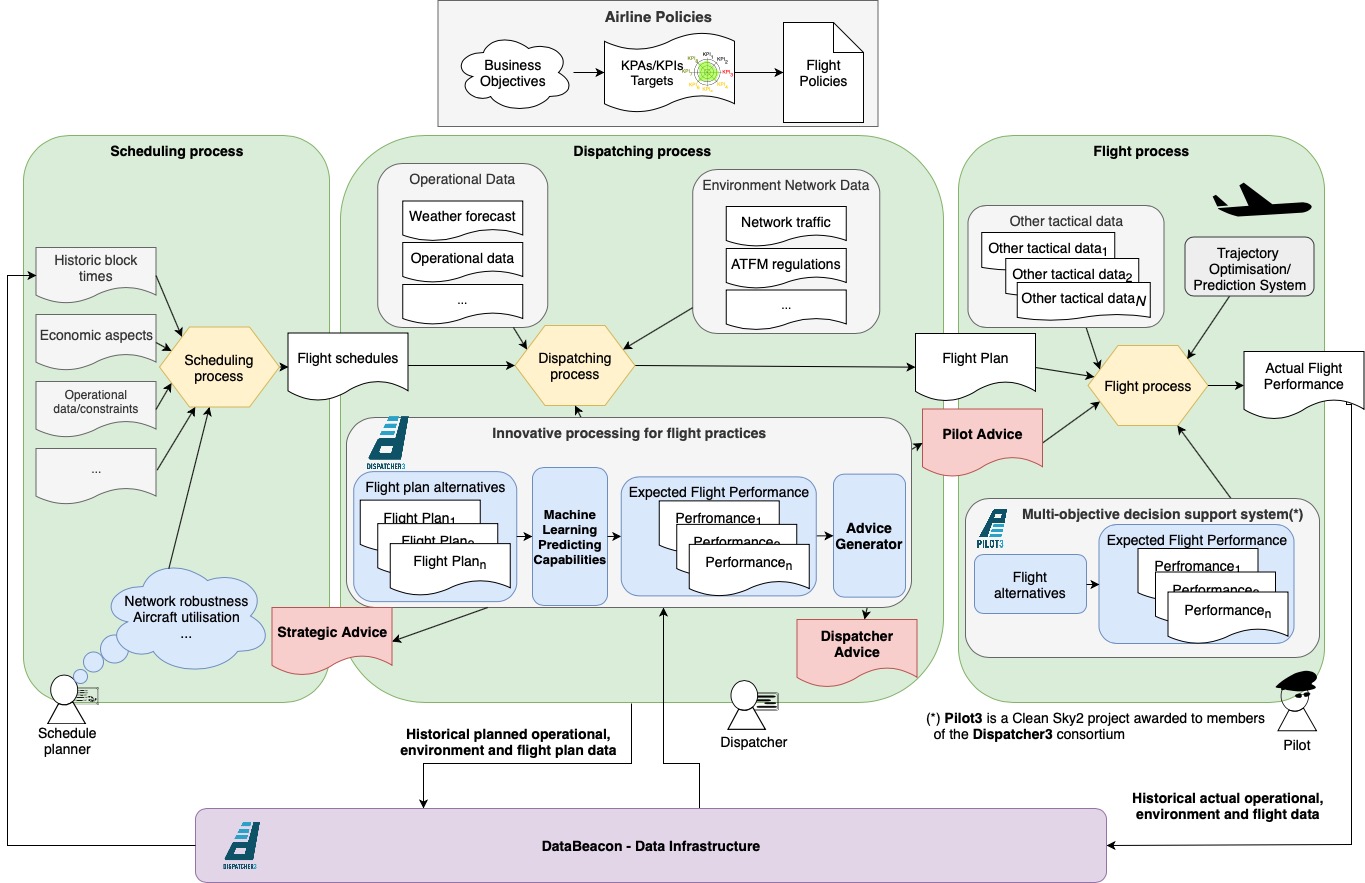 - Advice capabilities: producing specific advise to users: dispatchers, pilots and schedule planners.